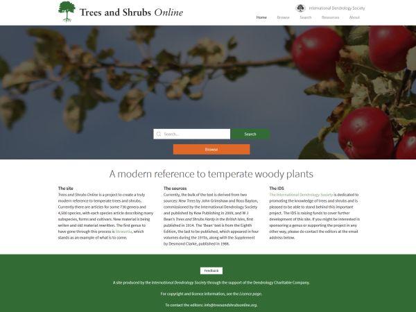 Trees and Shrubs Online is a truly modern reference to temperate trees and shrubs. Currently there are articles for some 730 genera and 4,500 species, including many subspecies, forms and cultivars.User login