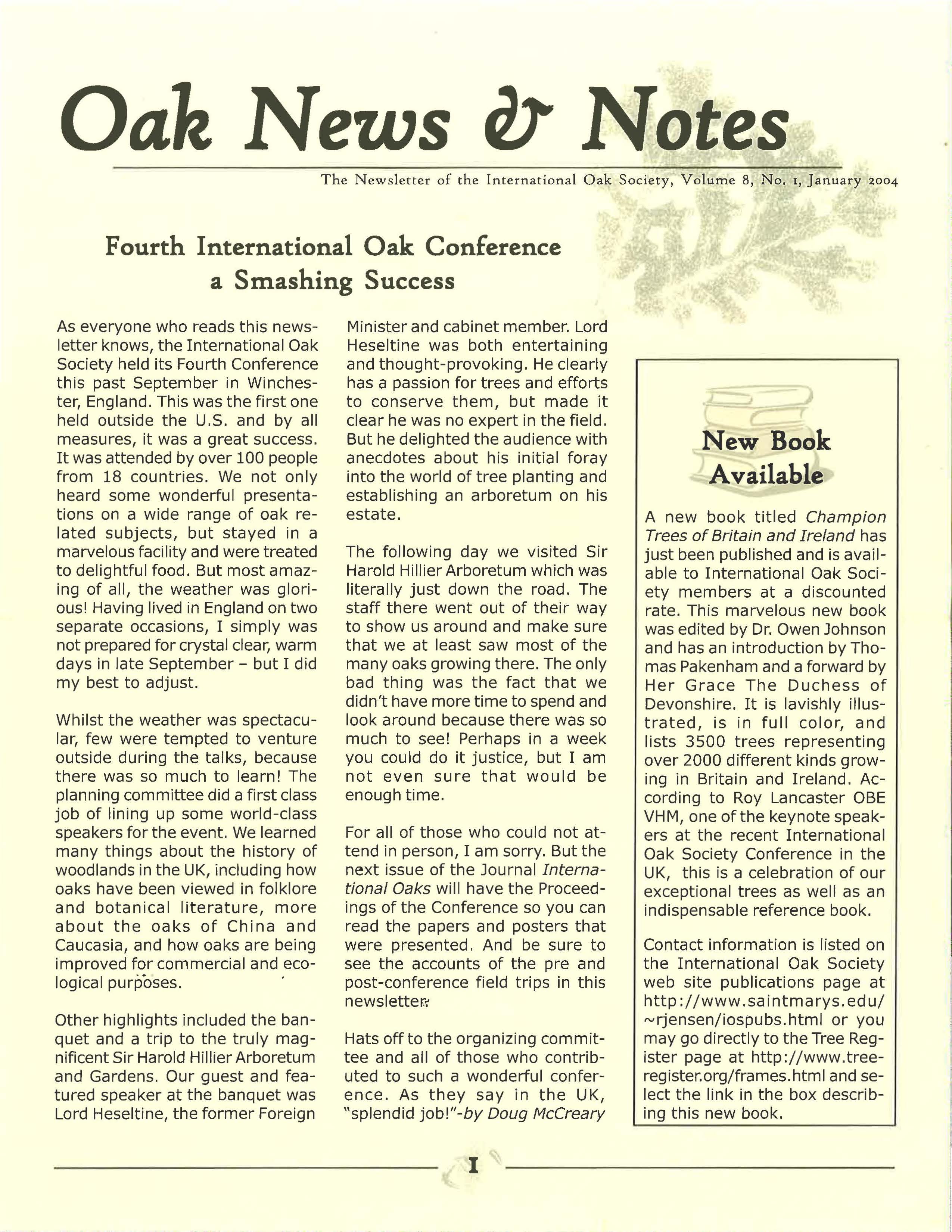 Oak News & Notes, Volume 08, No. 1, January 2004