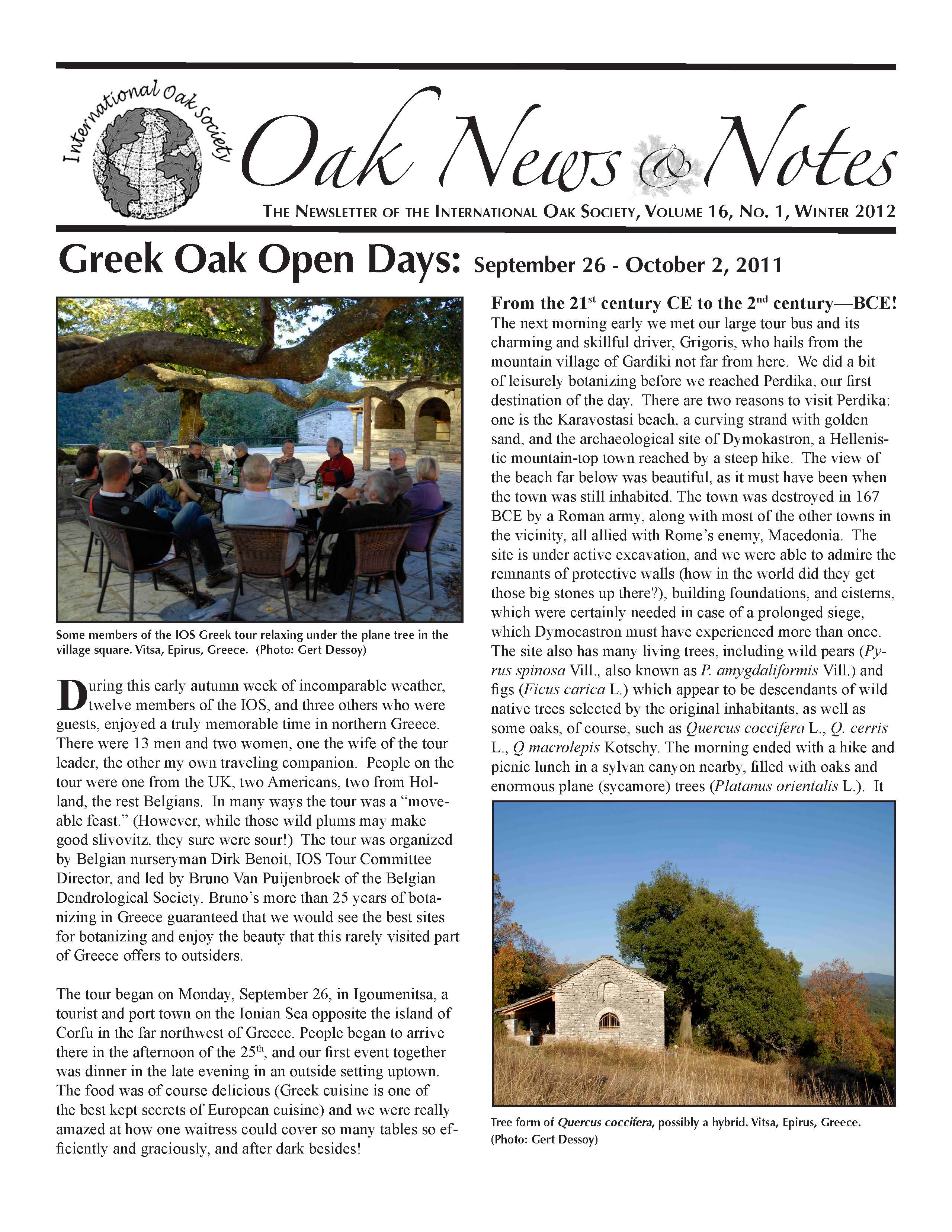 Oak News & Notes, Volume 16, No. 1, Winter 2012