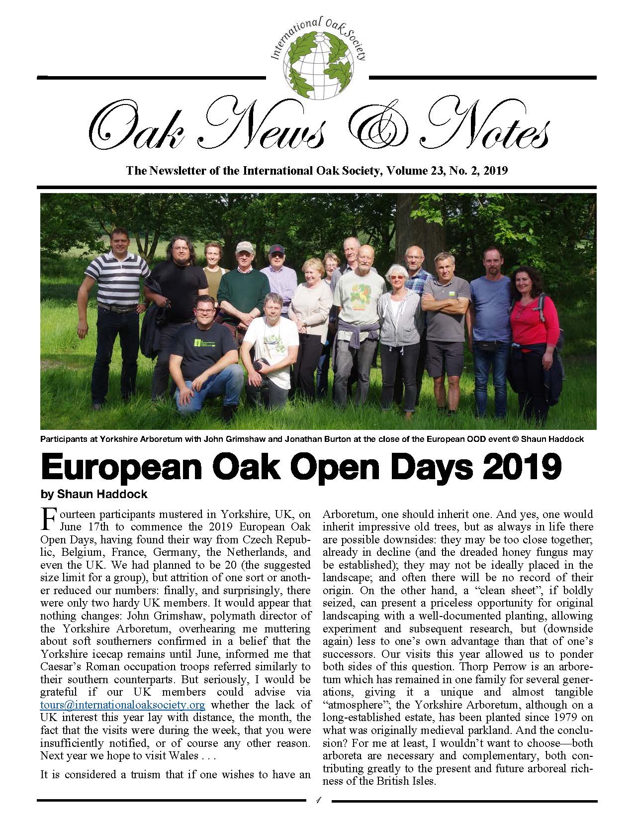 Oak News & Notes, Volume 23, No. 2, 2019